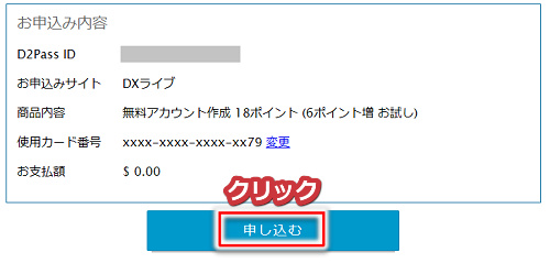 DXLIVEの担当の人に「すみません。DXLIVE初体験の読者さんが喜ぶ特典を何かください。」という厚かましいお願いをしてみたら、会員登録時に付与されるポイントを増量してもらえました(おな猿限定特典)。